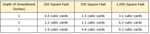 Using your own compost, buying bags of good-smelling earth, or buying it by the cubic yard are often the best ways to quickly amend your soil for fast results. However, you might need quite a bit of it. For a space of 200 square feet and a desired depth of 2 inches of amended materials, you’d need 1.2 cubic yards of soil. Oregon State University Extension Service has put together the following quick reference chart: